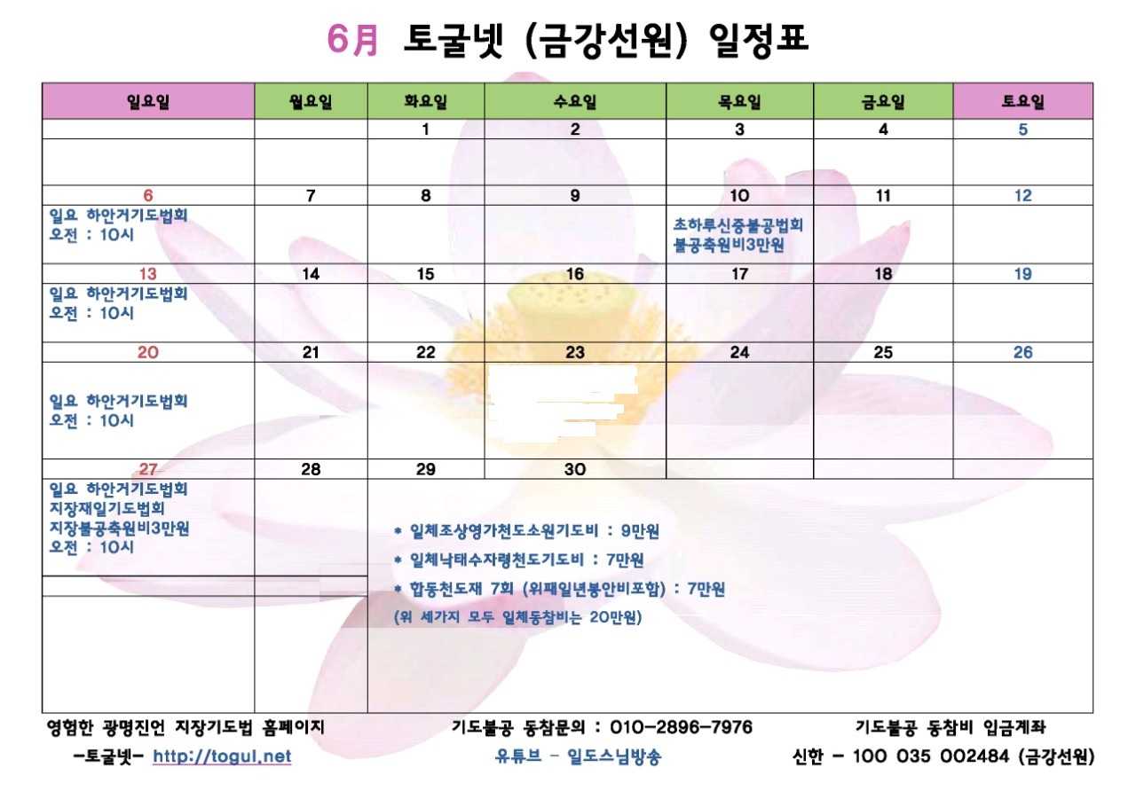 (기도비 불공비등 입금 새계좌 안내)