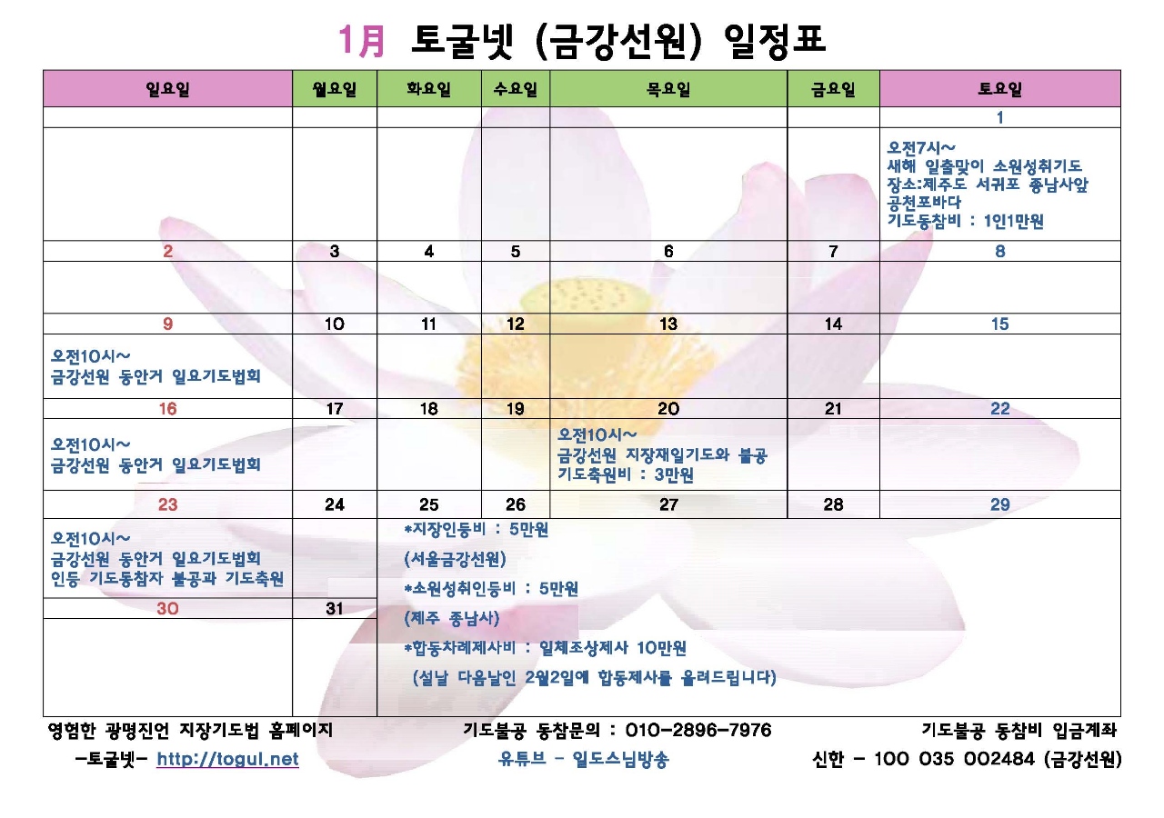 | (금강선원공지)2022년 10월 광명진언 지장기도법회 일정표 (0) | 2022.10.01 |