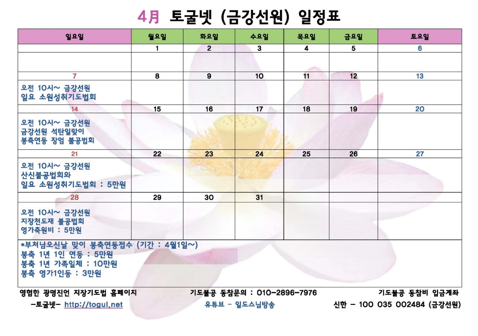| 이번주 일요일 산신불공에 동참하십시오 (2) | 2024.04.18 |
