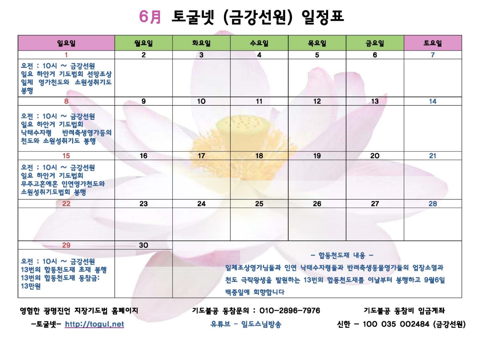 | 6월1일 일요일 하안거 영가천도 소원성취 기도법회 합니다 (2) | 2025.05.30 |